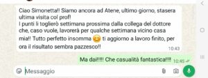 Ciao Simonetta! Siamo ancora ad Atene, ultimo giorno, stasera ultima visita con Prof! I punti li togliero’ settimana prossima dalla collega del dottore che, caso vuole, lavorerà per qualche settimana vicino casa mia! Tutto perfetto insomma, ti aggiorno a lavoro finito, per ora il risultato sembra pazzesco!!!